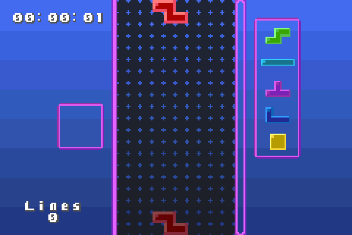 Master Mode, based on the beloved TGM series and specifically TGM3, was added! You can pick between "Normal" and "Classic" rules; Normal keeps the SRS rotation system and controls, while Classic features the ARS rotation system along with Sonic Drop and Locking Soft Drop so you can pull off zangi-moves! All the normal grades are here up to MasterM, except Grand Master which was omitted. In TGM3 the Grand Master grade was awarded after promotional exams which were given to players who played exceptionally well in their previous few games. That functionality was a bit hard to add to the game since a lot of pieces were missing, but I plan to it or a replacement in the following updates along with secret grades which were left out because of time constraints. Master mode without Grand Master does feel a bit incomplete, but I hope you understand.